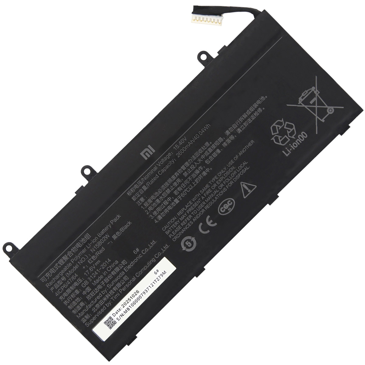 Spec: 15.4V 40.04Wh/2600mAh